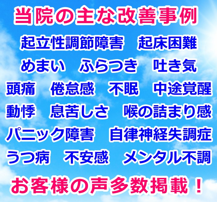 起立性調節障害、吐き気、頭痛、倦怠感、朝起きられないなどのお悩み。